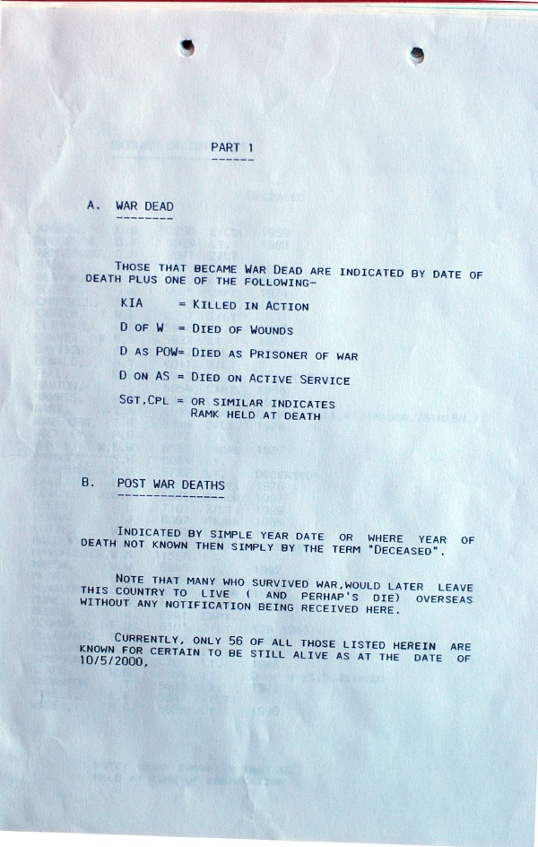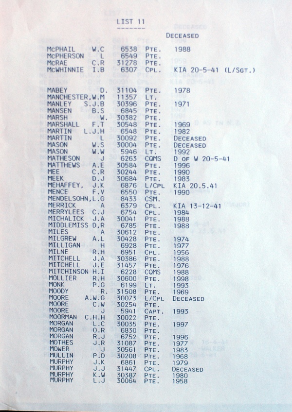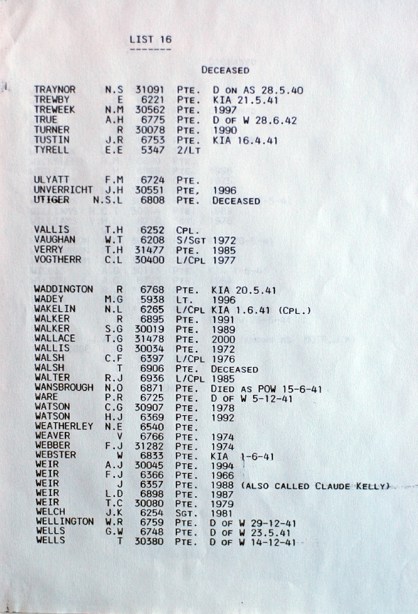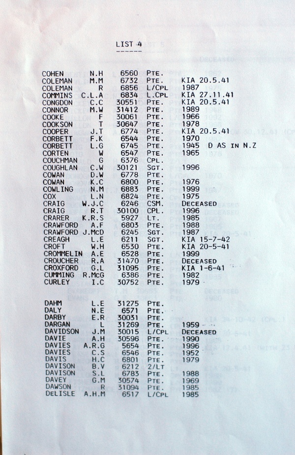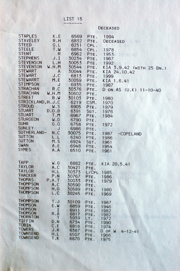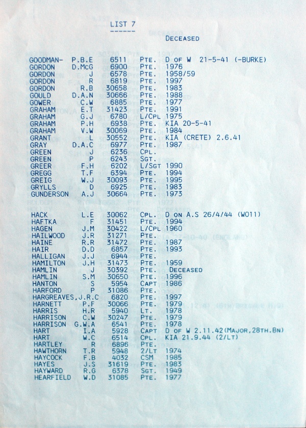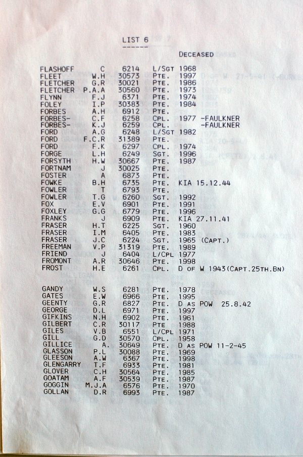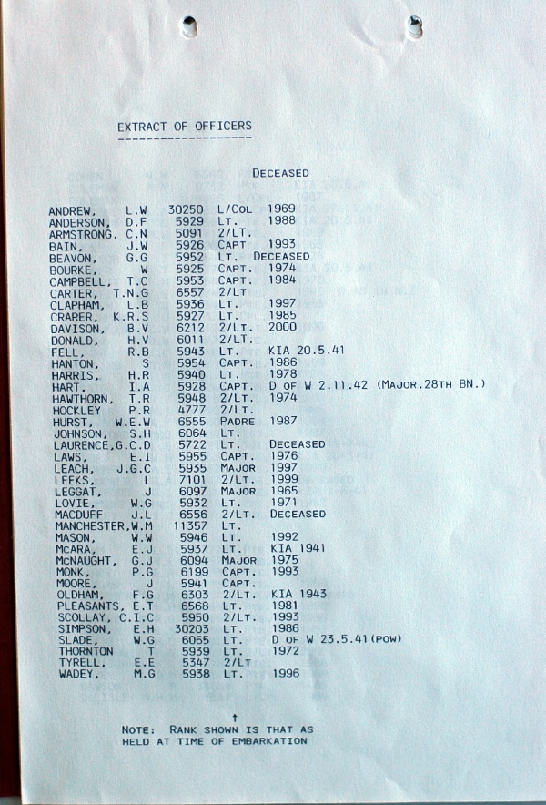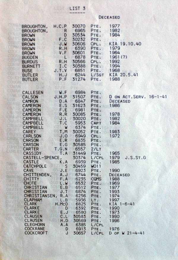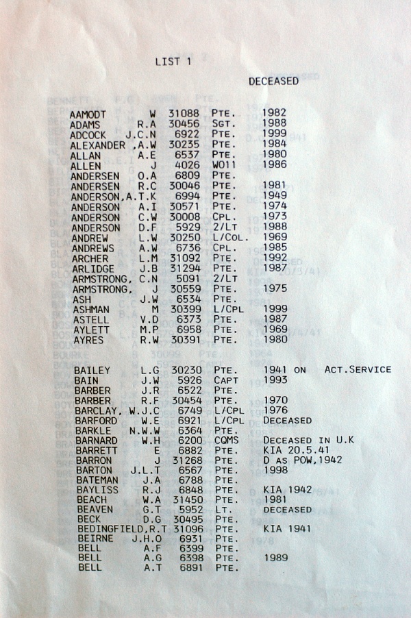 Several thousand men were once part of the 22nd Battalion. The exact number is not known for sure as an accurate roll was never kept. In the early days, up to late 1941, the War Diaries