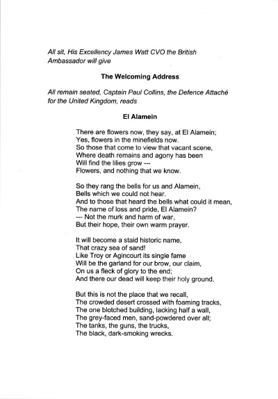70th Commemoration of the Battle of El Alamein: 19 October 2012