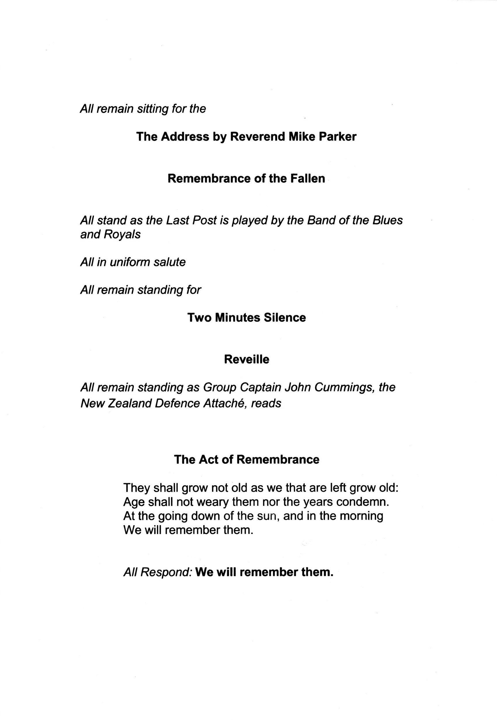The Order of Service for the New Zealand 70th Commemoration Service at El Alamein
