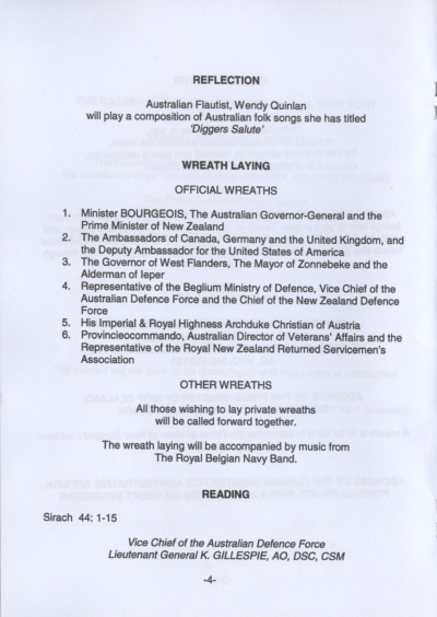 | Itinerary of the New Zealand Veterans Delegation: 90th Anniversary of the Battle of Passchendaele, 2-9 October 2007 |