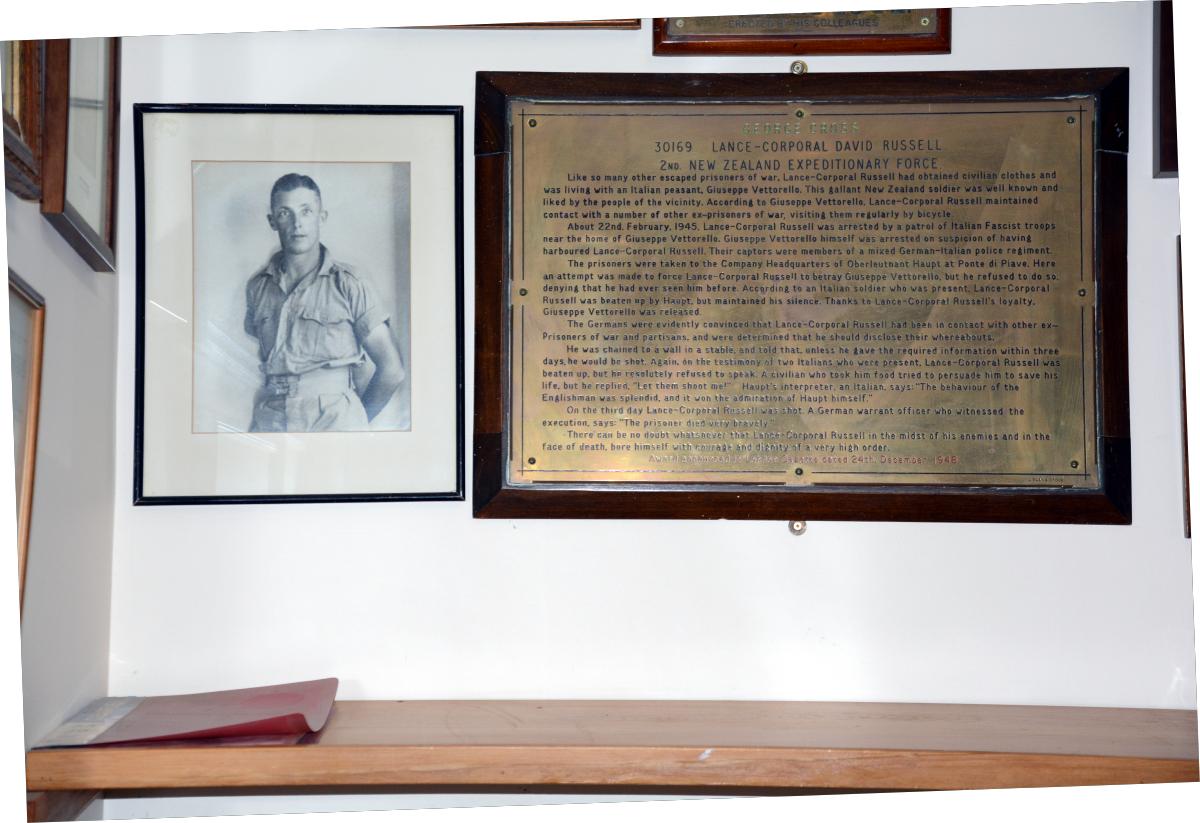 On the 50th anniversary of his execution a permanent memorial was erected to David Russell over the gravesite. This colourful memorial records in both English and Italian his deeds of valour and