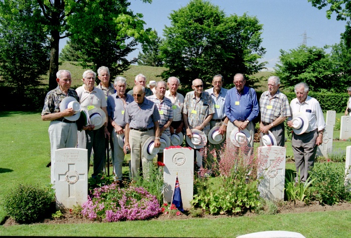 Fellow members of the 22 Battalion beside David Russell's grave |