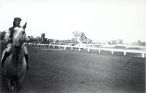 Charles on a donkey. Note the slit trench in the background. This is likely to have been at Maadi camp. |