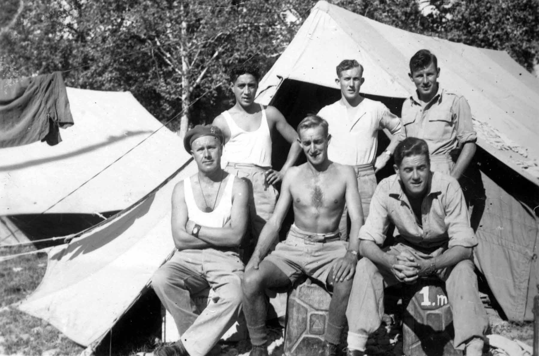 Battalion reunion, New Plymouth 1958: Buff Worth, Al Ciceridge, Bib Fraser, ?, Stu Southall (621870), Don Thomson, Brian Innes (444514), Gil Wall (444680). |
