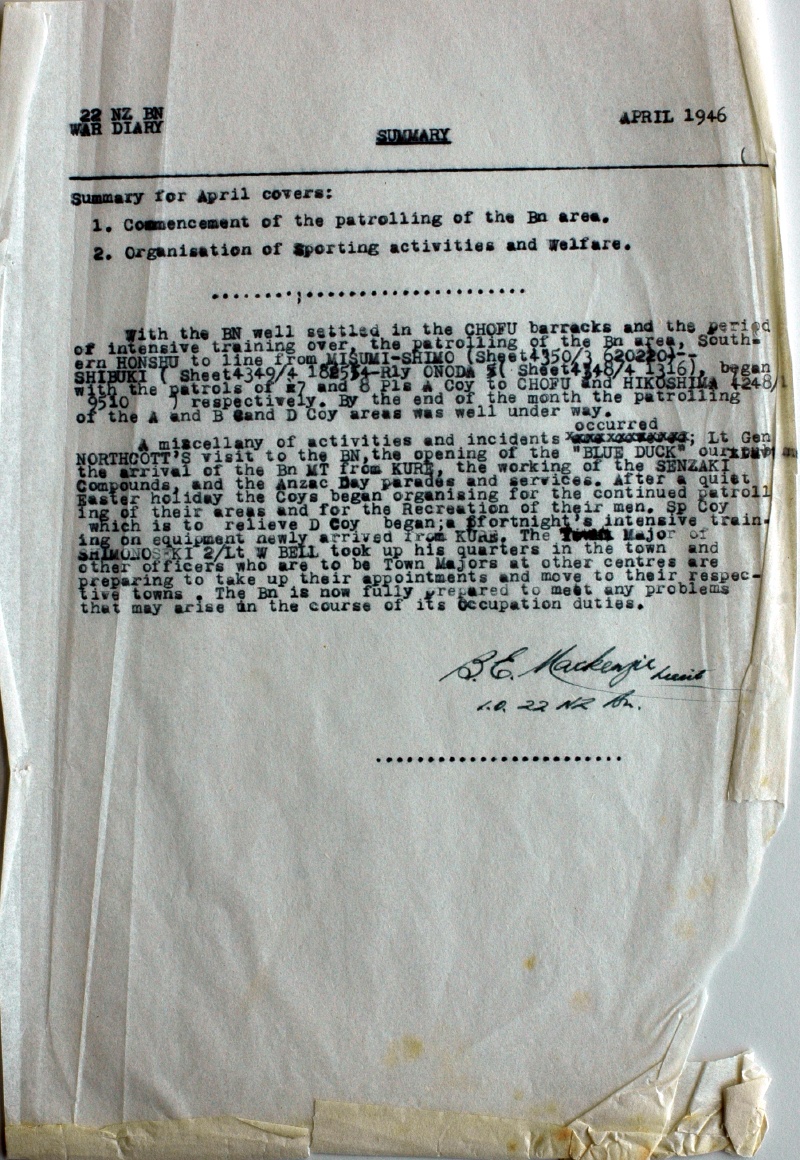 War Diary: April 1946