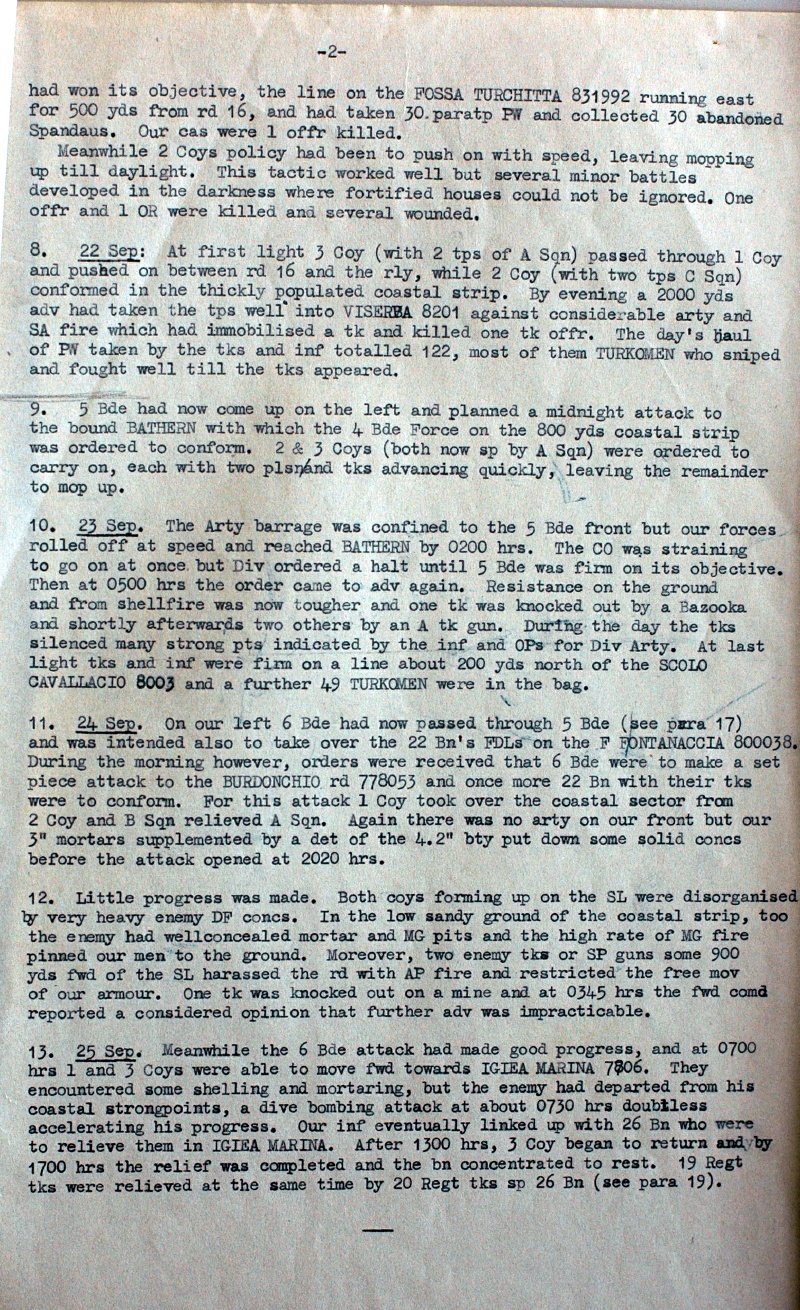 22 NZ (MOT) Battalion with tanks in advance from Riccione to Rimini and Igiea Marina 13-25 September 1944