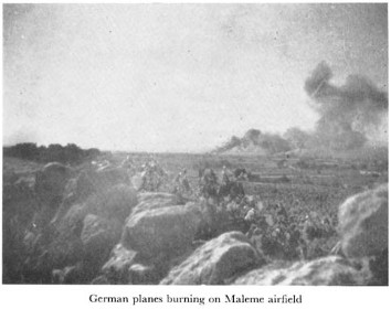 Late in the afternoon two Ju52s attempted to land on the airfield, but the mauled company was by no means carrion yet. All weapons opened up and the planes, spitting back small-arms fire, swung out to sea.