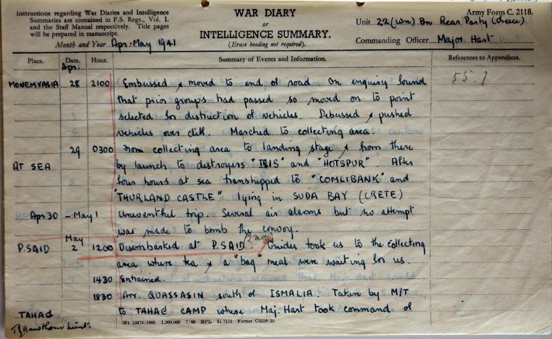 War Diary: April-June Rear Party 1941